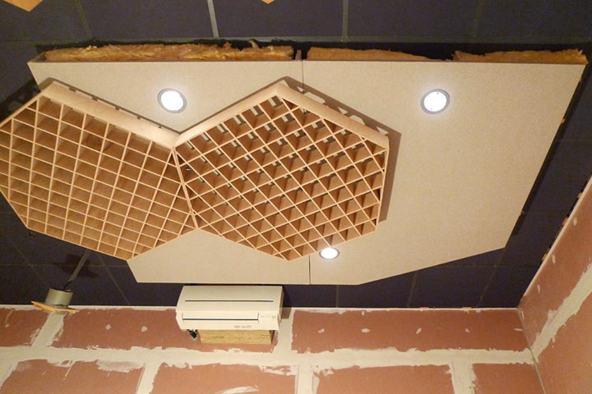 Nice work with the perimeter holes. Presumably for acoustic purposes, so the cloud will be effective for modes along the length and breadth of the room as well as up and down?