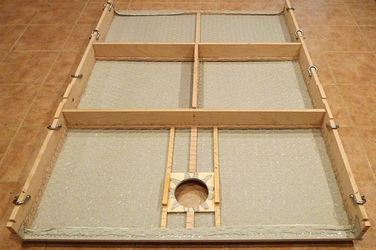 I prefer flat tiles so I started again, this time stapling some chicken wire across the tile, making it as taut as possible.