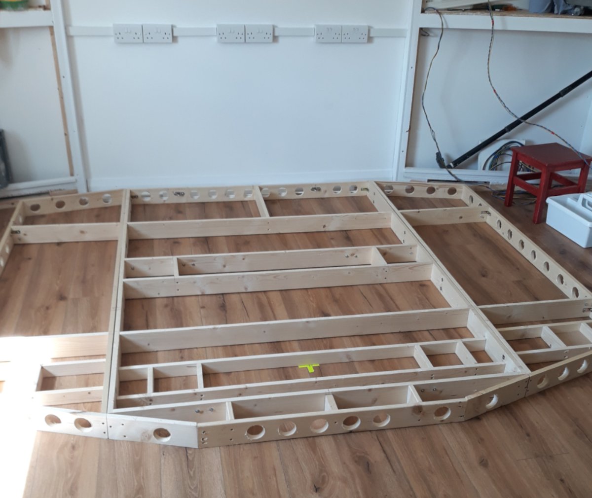 The woodwork on the cloud is finished and is ready to be covered in fabric and 'stuffed'.