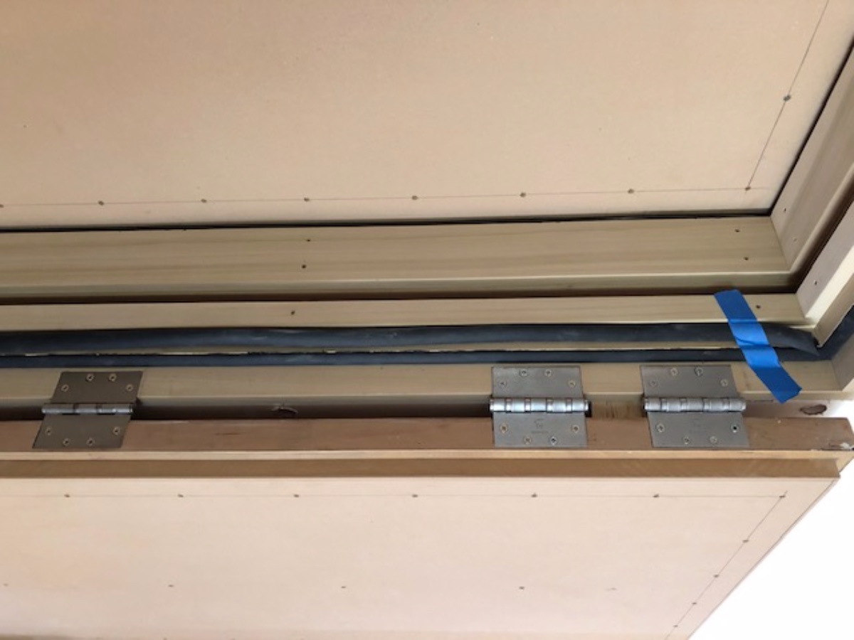 Time for doors. Started on June 4th. I hired Tom, a recommended local carpenter. Up until then I was using the GC's builders. The GC gave me a credit for four pre-hung solid core doors and 4 hours labor. Tom was $35 less per hour than the others. He also read and studied all of my door plans I sent him from a variety of sources. The other builders would not have had the patience for that. We still need to install the door closers.
