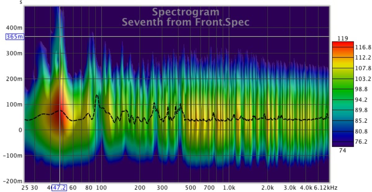 This is a REW frequency measurement with a variable filtering. Speaker drivers are right at 1/7th of the way into the room from the front wall.