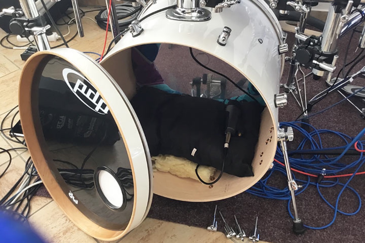 The bass drum mic needs more work to find the sweet spot inside the drum.