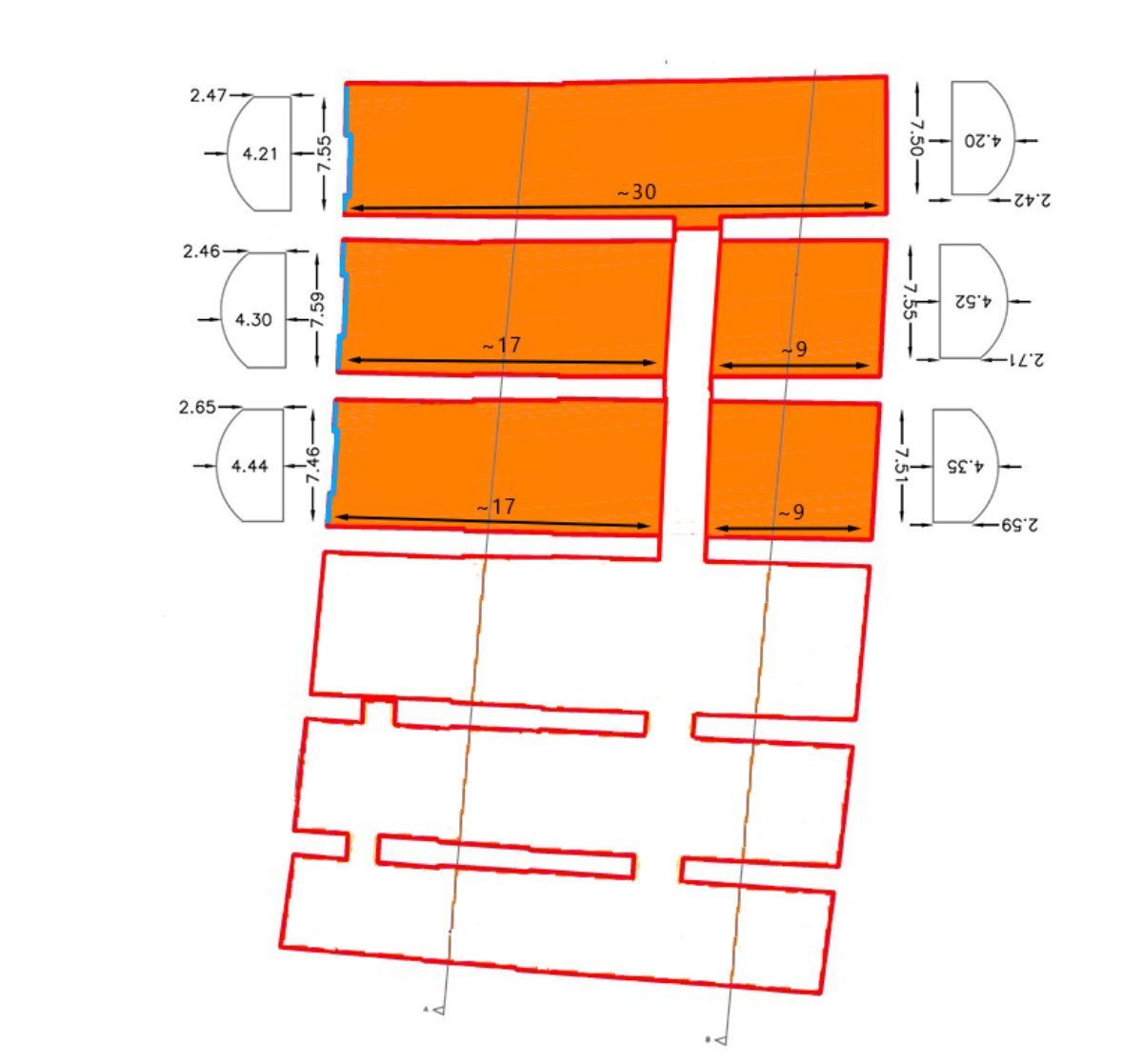A friend of mine is overseeing the construction of some new dance studios in several arches under a railway. The dance company already have several units in use but they've just expanded to include the 3 adjacent arches (5 units).
