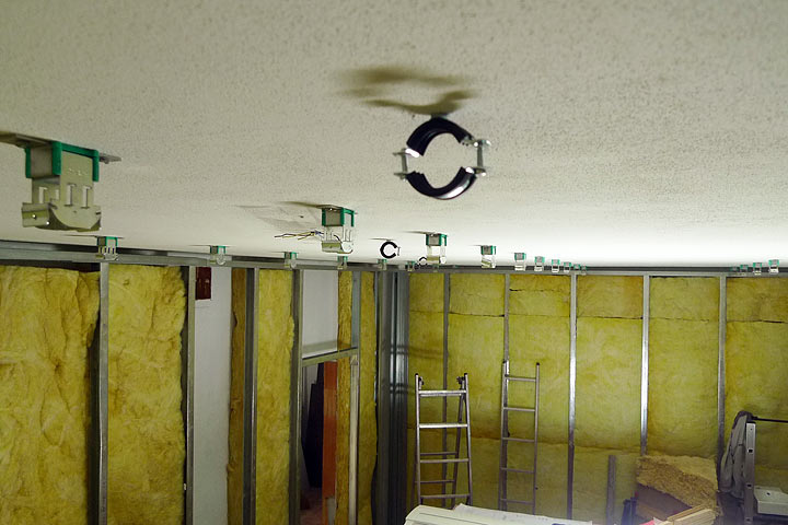 Tracks married to the ceiling isolation mounts.