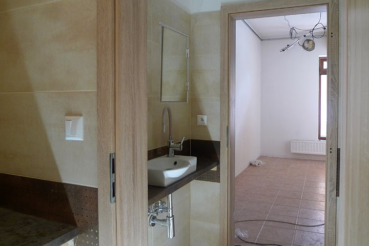 The first sign of life after 6 weeks of lockdown was the electrician and his son for 1 hour. They came and wired up everything to complete the toilet and kitchen areas. Something is now finished: hurrah!