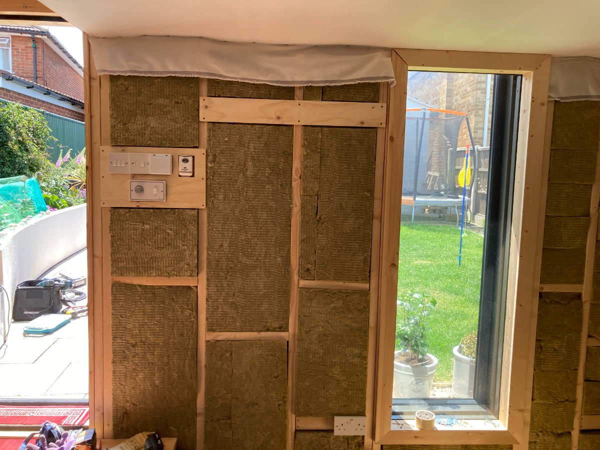 Then I needed to fill all the stud bays with rockwool, which made the room really odd sounding to talk in – a bit like I would imagine it would feel like to have your mouth filled with cotton wool!