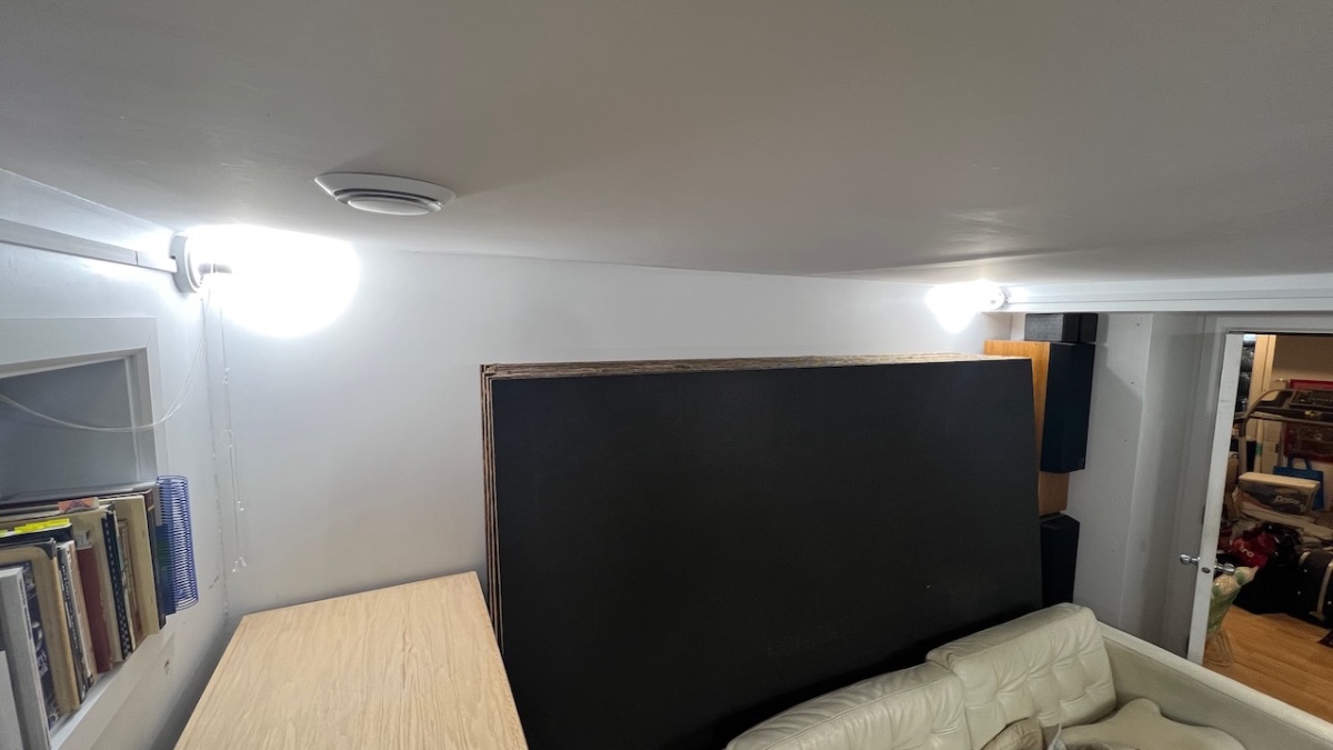 This week I built a frame so I could put four sheets (4" thickness total) as a makeshift cloud over the listening position: