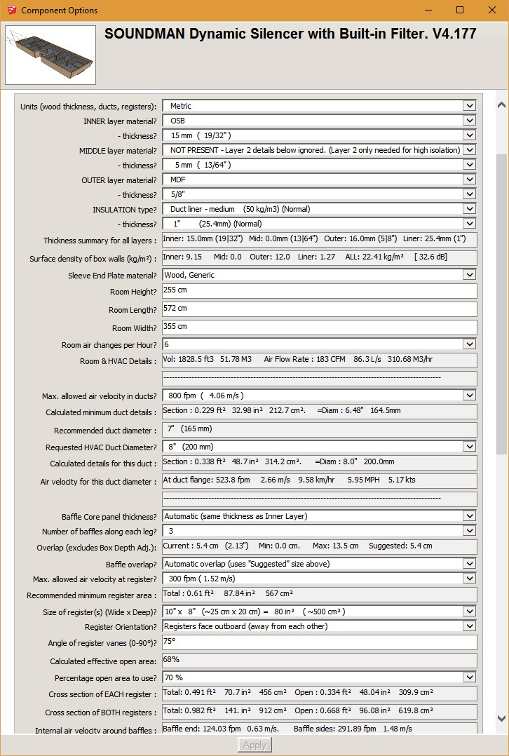- With all of that in mind, you can calculate the sizes of your ducts and silencer boxes (sometimes also called "baffle boxes").