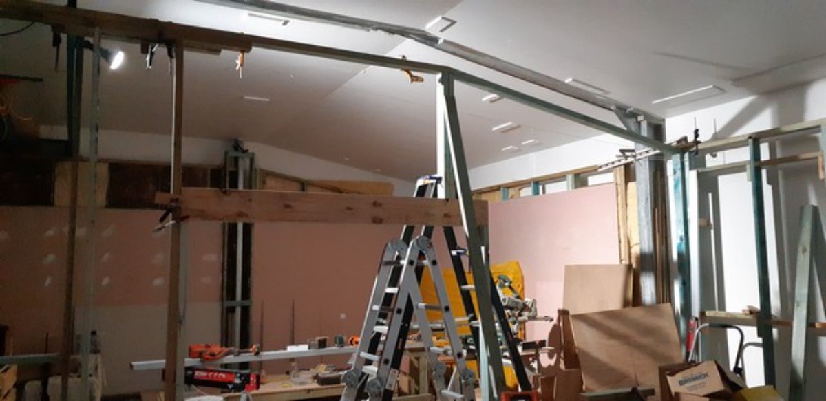 From then it was just a matter of inching up the acrow props and the drywall lift before I went down to the hardware store and got another prop to replace the drywall lift for this last part.