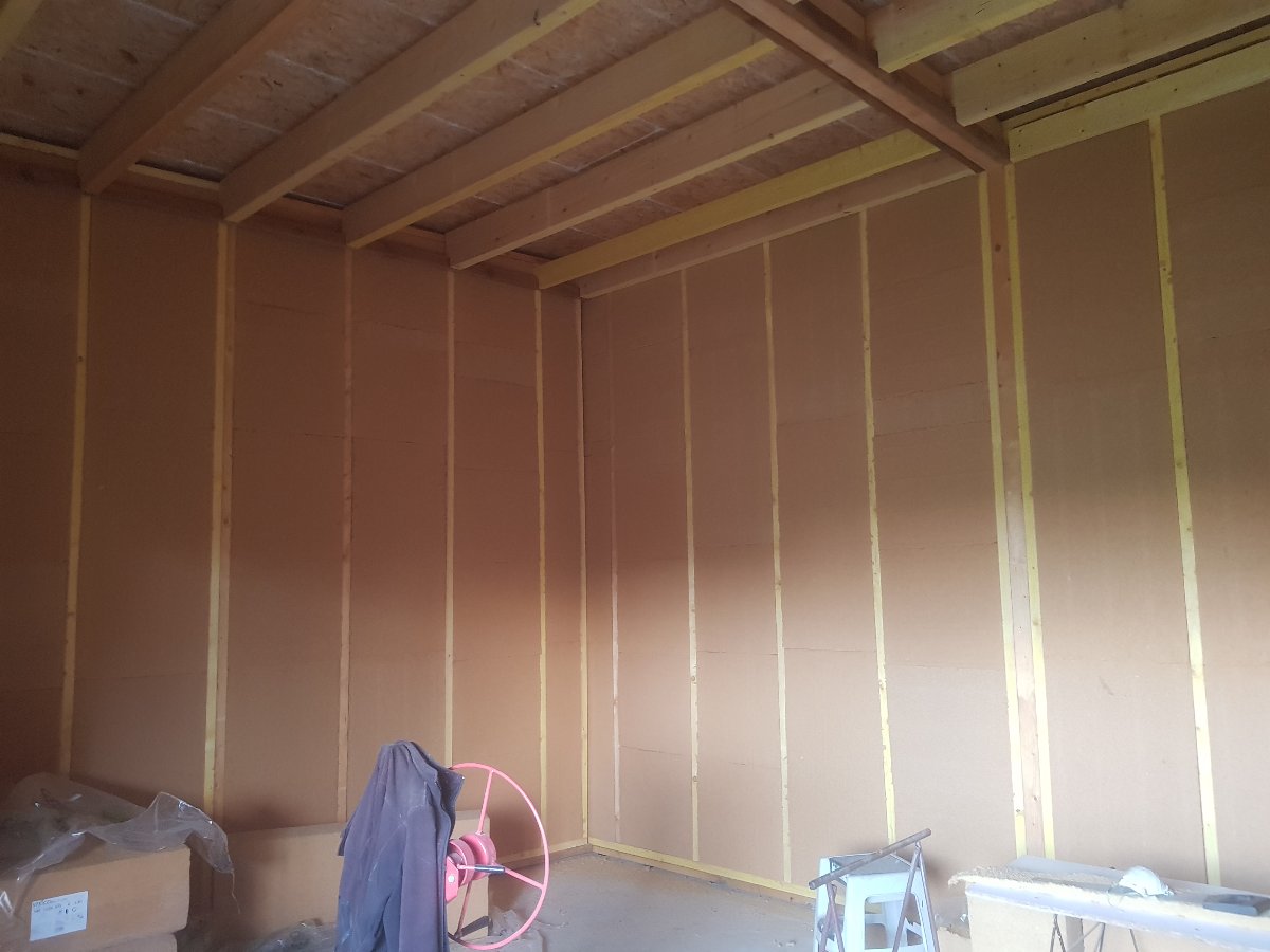 The room is coming along - see photo. The wood inner structure is done, wood fiber insulation is in place, the rest is on it's way...