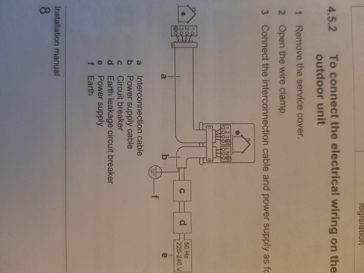The power supply to the interieur unit is a 4 core cable that comes from the outdoor unit. There's no power supply directly from the breaker box. Presumably there's a hot, neutral, ground and a pilot/command line, but I don't know which is the hot. I know which is neutral and ground. Everything's in place plastered in place, the walls are finished and painted, it would be a real hassle to have to pull another cable.