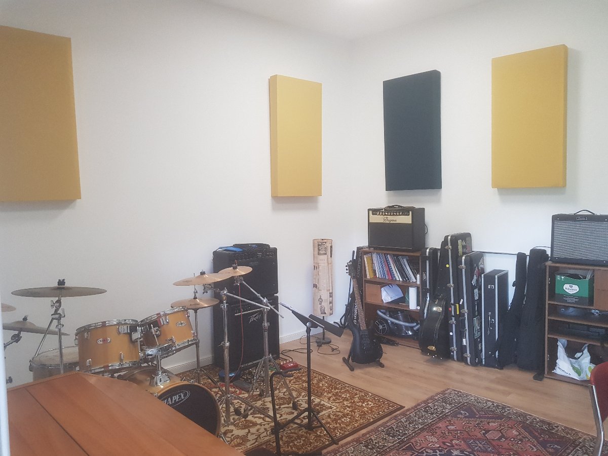 The room is coming along nicely, the interieur is almost finished, so I can teach and play normal level music inside. The next step will be finishing up the outter wall. I'll post photos soon.